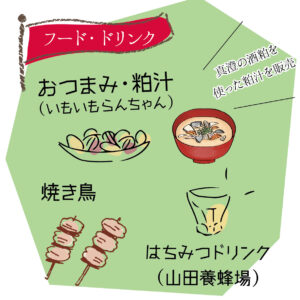 真澄の近隣にある「山田養蜂場」がはちみつを使ったオリジナルドリンクや、地元の方による焼き鳥も販売予定。
