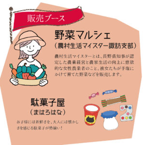 毎年大好評の農村生活マイスター諏訪支部の皆さんによる野菜マルシェ。